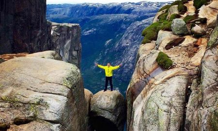 Tam 1.084 metre yükseklikte bir uçurumun üzerinde iki kayalık arasında duran ve altı uçurum olan bir taş düşünün. Şimdi o taşın üzerine...